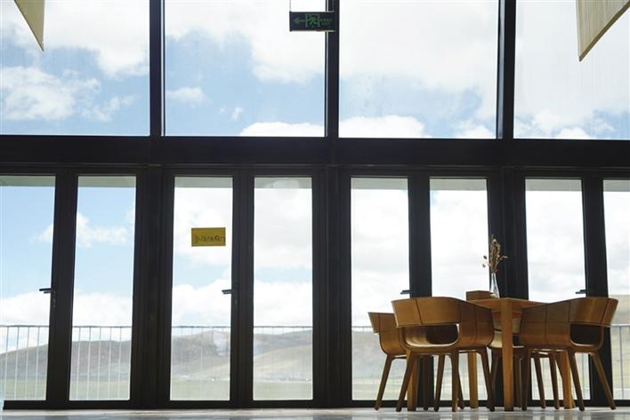 從正門進入,穿過牦牛文化空間走廊,便可到能夠以最佳視角欣賞念青唐古拉山的VR觀景臺。緊鄰觀景臺右側,是一間擺放當地文創產品、各類書籍的觀景咖啡廳。該咖啡廳的兩面墻體設計為超大落地窗,在此休息的游客可以邊品嘗咖啡,邊欣賞念青唐古拉山及拉多草原的美景。走進咖啡廳,記者看到不少在這里休息的游客都在低頭寫著什么,經咖啡廳負責人介紹:“這些游客是在寫明信片,我們這里不僅提供餐飲,還提供印有本地風景的明信片,并同中國郵政合作,幫助游客按時將明信片寄到他們的親朋好友手中,讓游客們的旅途變得更有意義。”
