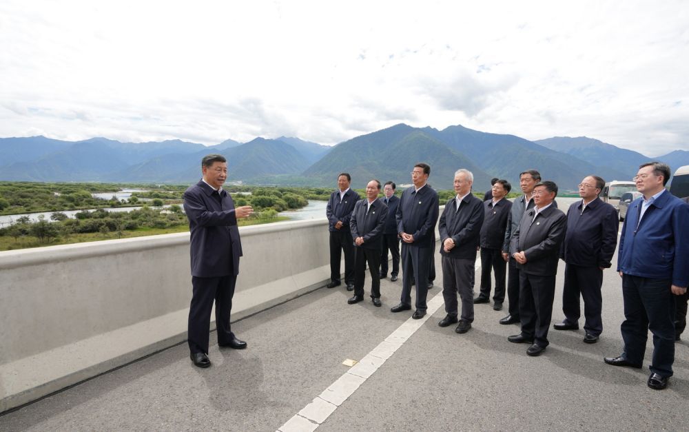 21日上午,習近平乘車來到尼洋河大橋,遠眺水波蕩漾、草木蔥蘢的雅尼濕地,聽取雅魯藏布江及尼洋河流域生態環境保護和自然保護區建設等情況。
