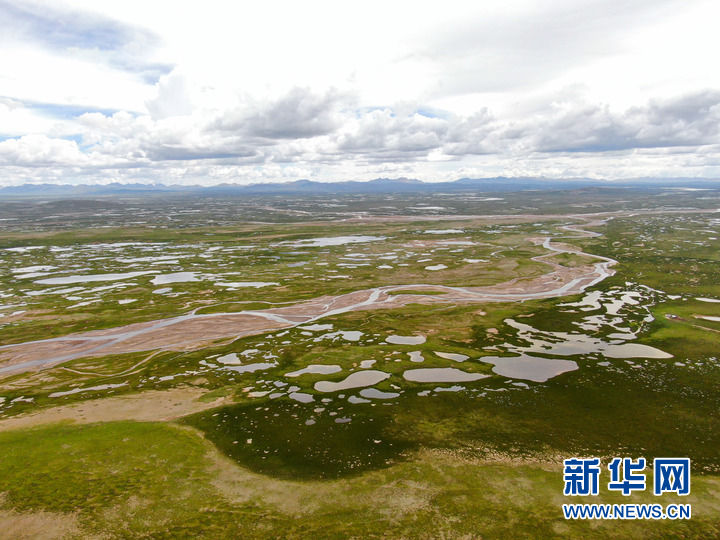 這是7月23日拍攝的長江源地區的查旦濕地(無人機照片)。新華社記者 張龍 攝