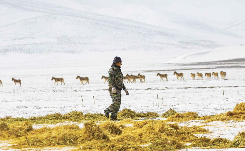 從戴上紅袖章那天開始,他就穿梭在山林、湖畔、河邊,有時撿拾垃圾,有時關注野生動物的蹤跡,默默守護這片家鄉的草場、湖泊、高山。在一次巡護中,切保和隊友們發現由于季節的變化,導致黑頸鶴等野生動物的巢穴被淹,給它們的生產棲息帶來了影響。于是,他和其他生態管護員為黑頸鶴等野生動物修巢筑窩12個。“不讓垃圾污染草場、污染動植物的水源地”是每一位管護員的共同想法。