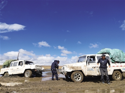 可可西里巡山隊隊員在巡山途中。可可西里管理處供圖