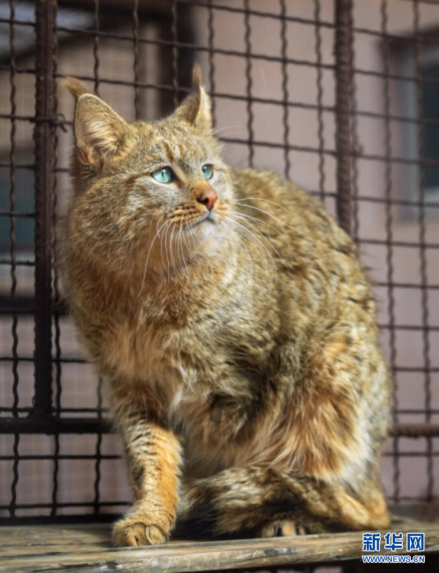 這是在青海省西寧野生動物園拍攝的人工救助的荒漠貓(資料照片)。新華社發(西寧野生動物園供圖)