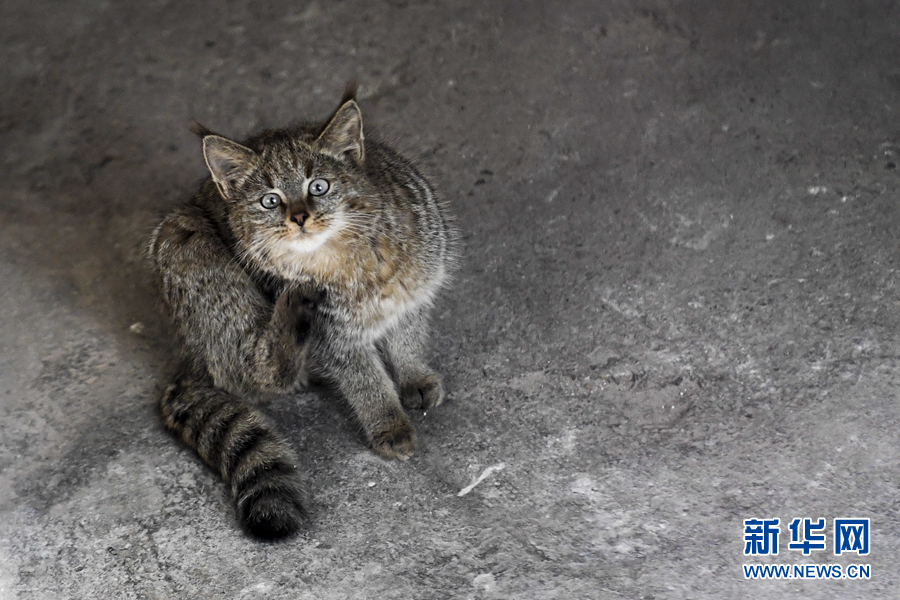 這是5月1日在西寧野生動物園拍攝的一只人工救助的荒漠貓。新華社記者 張龍 攝