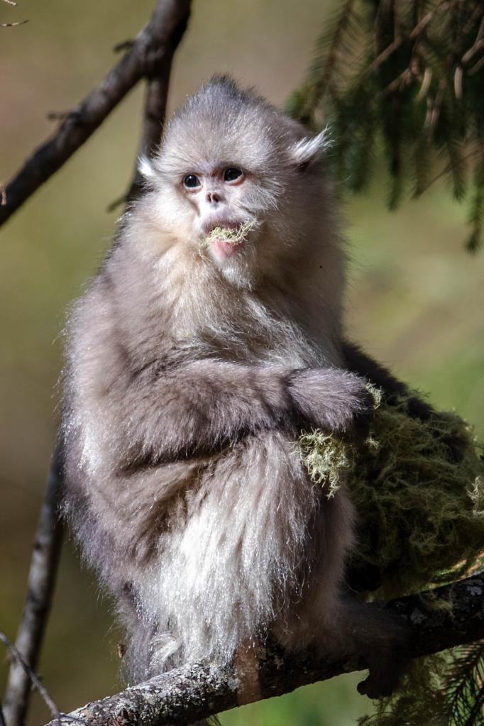 滇金絲猴分布在我國喜馬拉雅山南緣橫斷山系的云嶺山脈,金沙江、瀾滄江之間面積約2萬平方公里的區(qū)域內(nèi)。這些“雪山精靈”長年生活在人跡罕至的高山地帶,堪稱世界上除人類以外棲息海拔最高的靈長類動物。