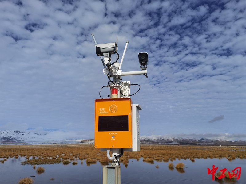 10月20日,“母親河畔的中國”采訪團來到位于四川若爾蓋濕地國家級自然保護區的花湖濕地。十月末的若爾蓋縣氣溫已接近零度,遠處山峰銀裝素裹,陽光從低沉的云朵中一瀉千里,照亮了靜謐的花湖濕地。