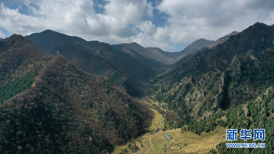 海東市互助土族自治縣北山國家森林地質公園扎龍溝秋景(無人機照片)。新華社記者 張宏祥 攝