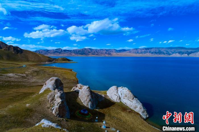 圖為黃河源頭湖泊在藍天下如圖明鏡。 瑪多縣委宣傳部 供圖