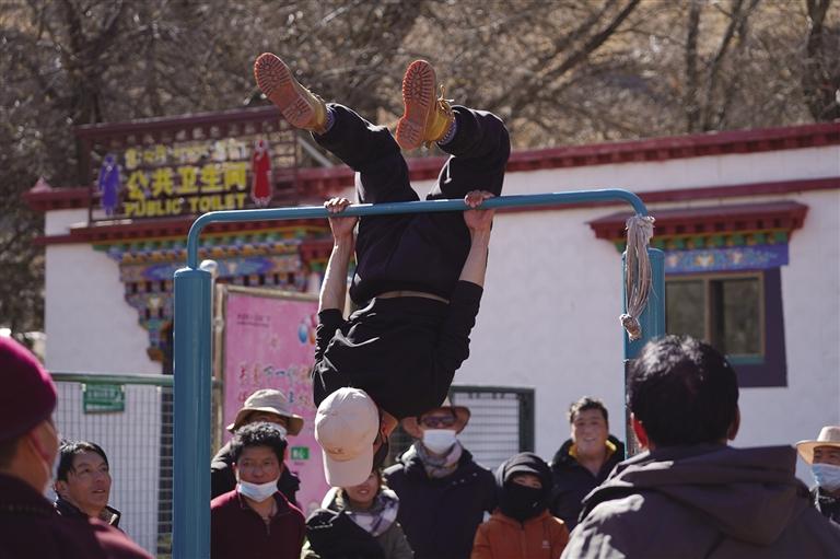 漫步公園,到處都是人們晨練的身影。太極、柔力球、廣場舞,清晨的宗角祿康公園十分熱鬧。在公園一角,還有人在跳鍋莊舞,他們隨著音樂,一會兒扭胯、一會兒踢腿、一會兒擺手……個個精神飽滿。