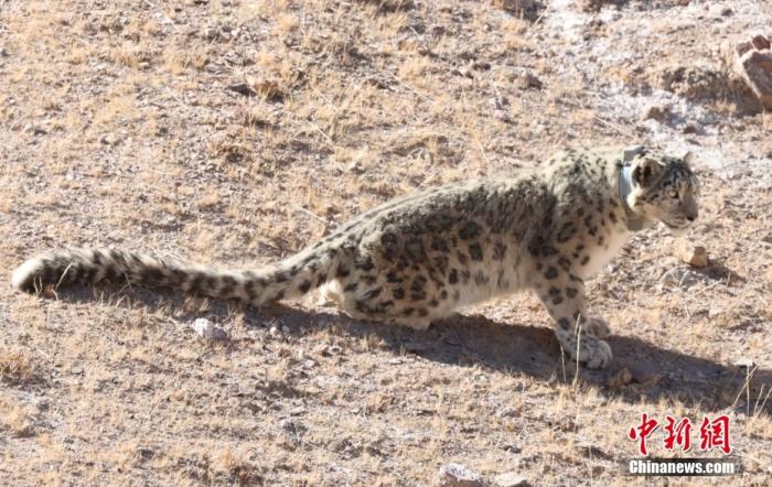 資料圖為佩戴衛星追蹤項圈的雪豹被放歸。中新社發 祁連山國家公園青海省管理局供圖