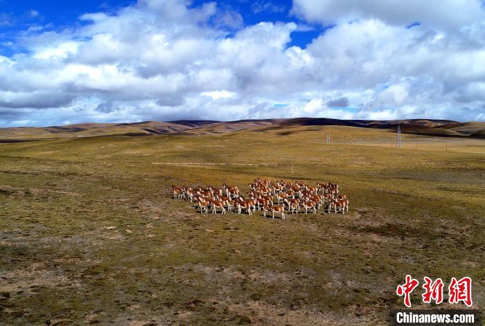 圖為黃河源頭瑪多境內(nèi)的藏野驢群。 瑪多縣委宣傳部 供圖