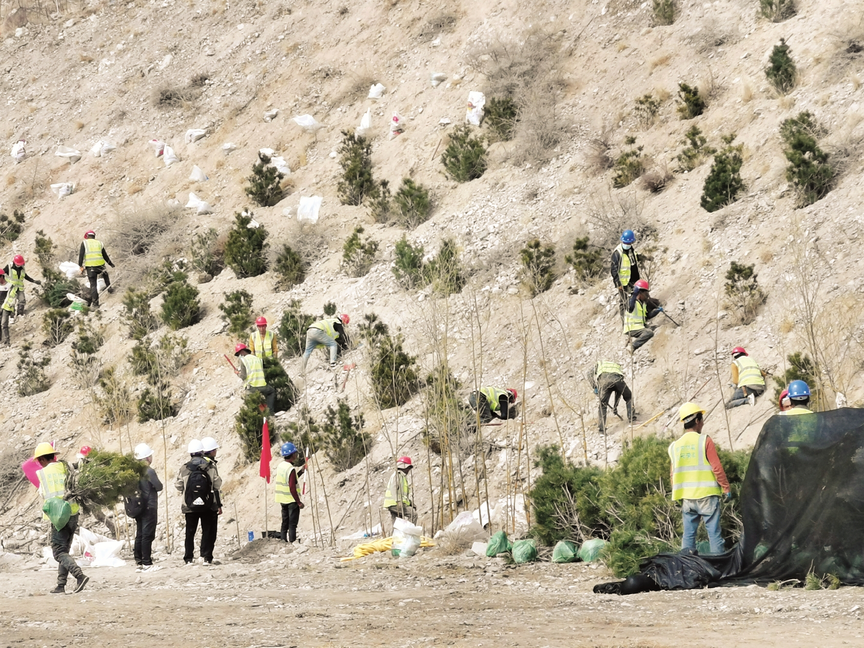 3月24日,在拉薩南北山東嘎3號片區植樹造林活動現場,員工們熱火朝天地挖坑、扶苗、培土、澆水,再給小樹苗掛上牌子……公司員工伍聯說:“南北山綠化工程開始后,周邊綠化和環境空氣質量等各個方面都會更好。拉薩會越來越美麗。”