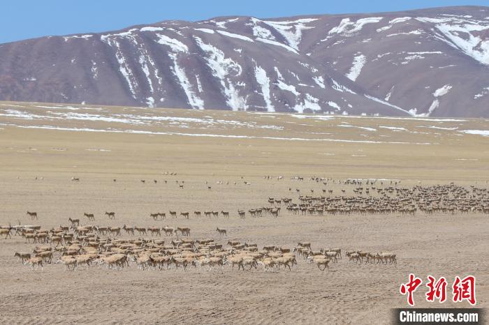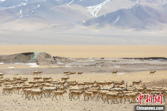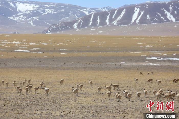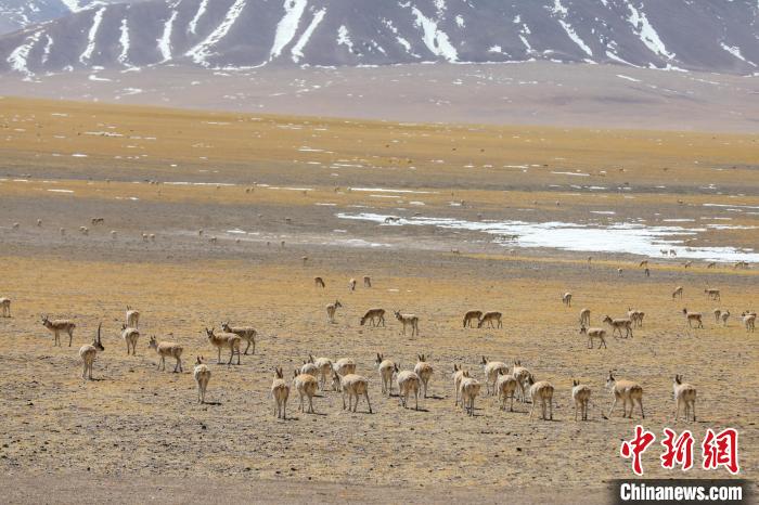 圖為3月27日,西藏改則縣先遣鄉附近的藏羚羊種群。 邊巴 攝