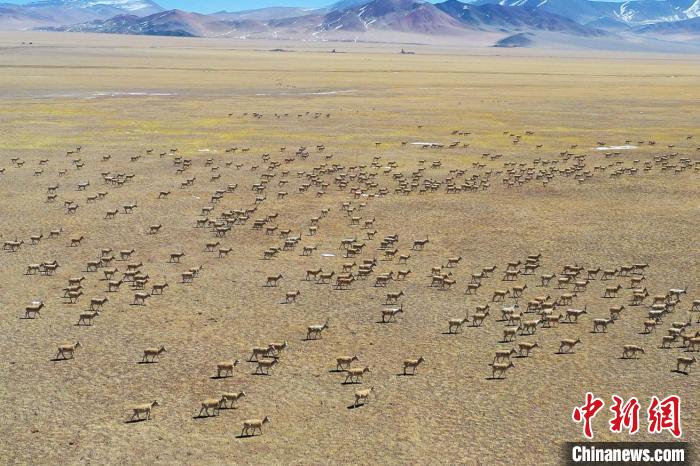 3月27日,航拍超大規模的藏羚羊群。 索朗仁青 攝
