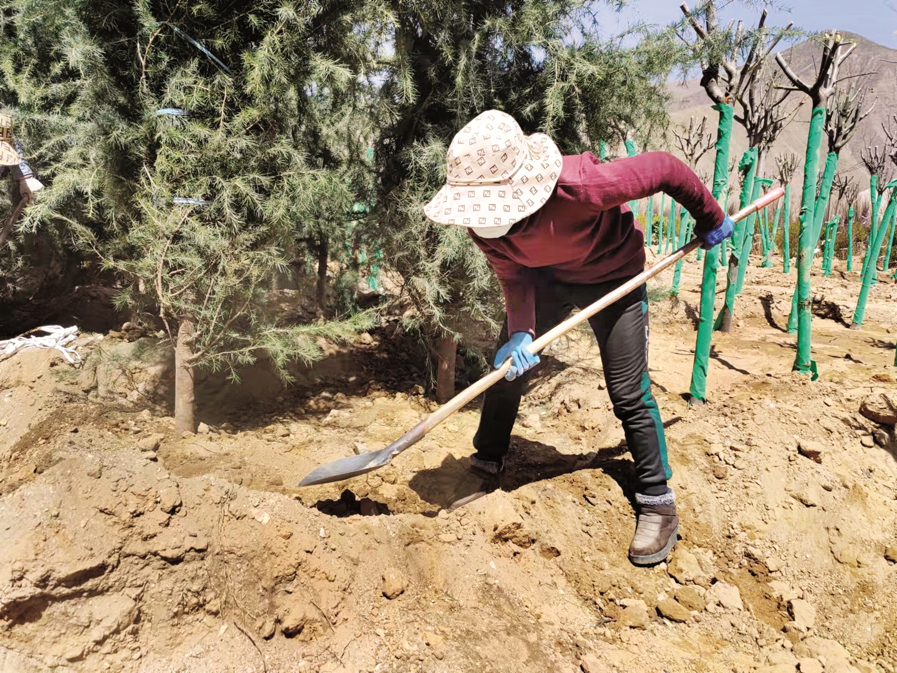 當前拉薩天氣晴好,氣溫回升,正是育苗植樹的好時節。扶正樹苗、填土壓實……在拉薩市曲水縣茶巴朗村水土保持生態園里,縣水利局組織附近村民移植培育松樹、蘋果樹、桃樹等林木,大家三五成群忙得不亦樂乎。
