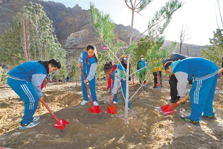 為踐行綠水青山就是金山銀山理念,積極推進生態文明建設,日前,拉薩市姜昆黃小勇希望小學學生和社會各界人士,共同開展義務植樹活動。