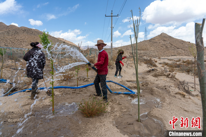 他說,雅魯藏布江兩岸的沙地多是流動沙,沙土沒有樹木生長所需的營養,種樹前先要填生物肥、秸稈等。此外,樹苗還面臨夏季沙地溫度過高以及水源缺乏等問題。“雖然地處江邊,但種樹點離河道有五六公里甚至更遠。”孟利東說,他們篩選、馴化本地植物作為種苗,澆灌水源采取就地打井的方式取水,在沙地上植樹造林。