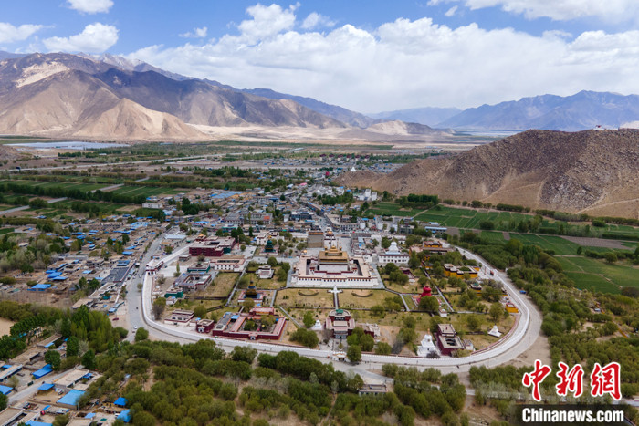圖為4月18日,西藏桑耶寺周邊環境。(無人機照片) 中新社記者 江飛波 攝