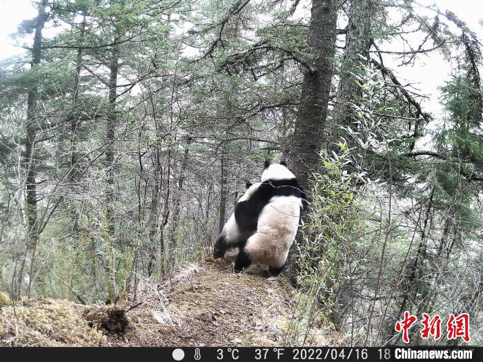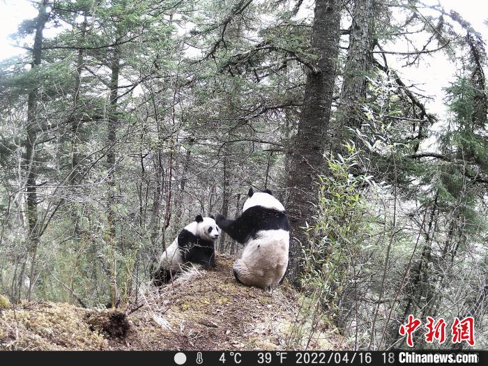 為了打敗競(jìng)爭(zhēng)者,平時(shí)呆頭呆腦、憨態(tài)可掬,有點(diǎn)傻萌的“滾滾”秒變“功夫熊貓”,電光火石的出拳速度和直取要害的攻擊路線,精彩激烈的拳擊、摔跤、柔術(shù)等看家本領(lǐng)統(tǒng)統(tǒng)用上,甚至為了提高自身氣勢(shì),不惜使出“獅吼功”,試圖在氣勢(shì)上壓倒競(jìng)爭(zhēng)對(duì)手。而這一切只是為了選擇優(yōu)秀的基因,以利于大熊貓種群在嚴(yán)酷的自然環(huán)境中繁衍生存。此次監(jiān)測(cè)視頻中,出現(xiàn)3只大熊貓同框畫面,其中兩只雄性大熊貓因爭(zhēng)奪交配權(quán)出現(xiàn)吼叫、打斗行為;一段視頻中,出現(xiàn)兩只大熊貓“打情罵俏”求偶交配畫面。