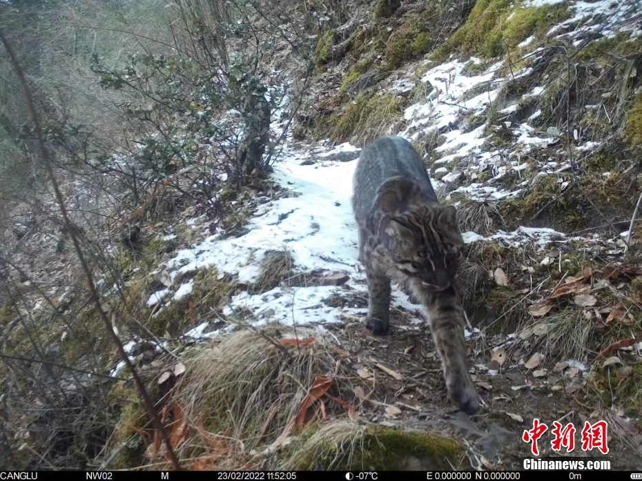 5月17日,記者從西藏自治區那曲市林業和草原局獲悉,在該局和山水自然保護中心聯合開展的那曲生物多樣性調查項目中,首次在那曲市嘉黎縣記錄到了國家一級保護動物金貓的活動影像,填補了那曲市的金貓分布空白,并且4300米也是迄今為止金貓在全球的最高分布海拔記錄。圖為2022年2月紅外相機拍攝到的金貓影像。 中新社發 山水自然保護中心 供圖