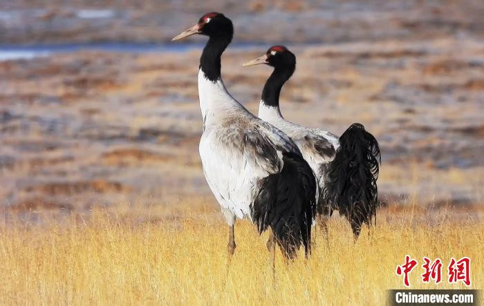 圖為黑頸鶴夫婦以高聲合鳴的方式宣誓領地,威懾入侵者?!埦霸?攝