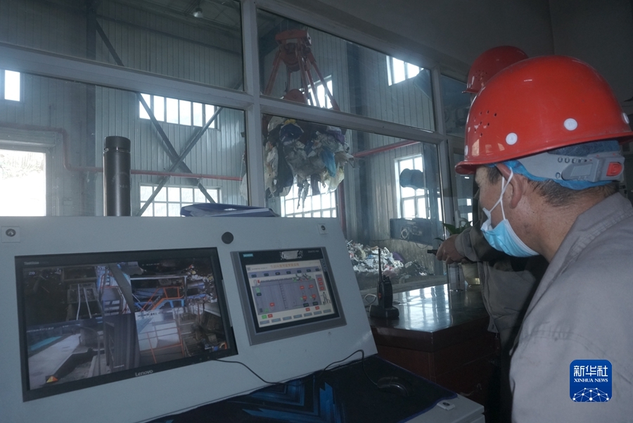 6月16日,門源縣泉口鎮生活垃圾高溫熱解處理站的工作人員正在忙碌。新華社記者 周盛盛 攝