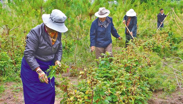 圖為村民在養護樹莓。
