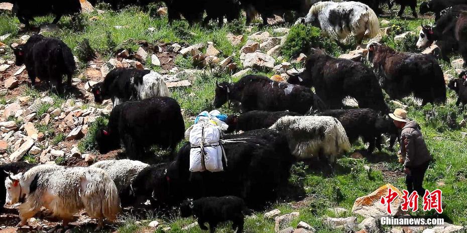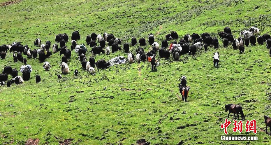 圖為牧民讓牦牛背上“行李”轉場。 仁青多杰 攝