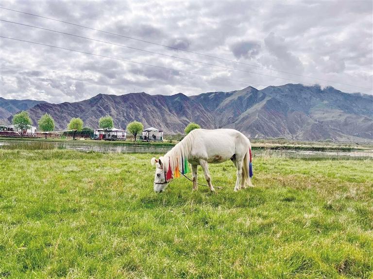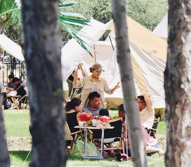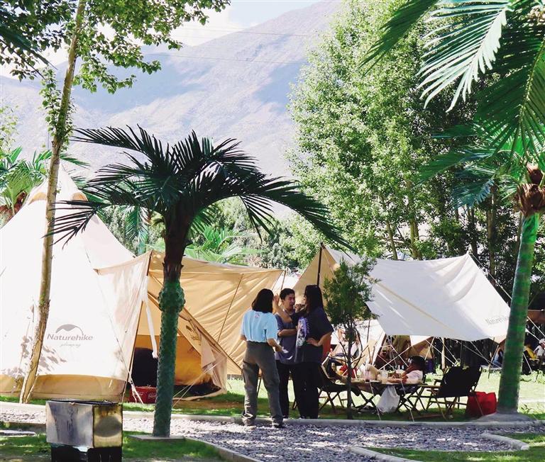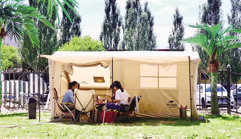 在拉薩,還未踏進(jìn)林卡營地,便能聞到烤肉的香氣,尋著歡笑聲走去,你會發(fā)現(xiàn),這些林卡營地宛如“桃花源”呈現(xiàn)在眼前。不論是藏式林卡營地還是西式露營地,都有共同的“魔力”——把“煩惱”擋在門外。一頂頂白色的帳篷和天上的朵朵白云相呼應(yīng),綠色的草地是夏天才有的限定“地毯”,抬頭,油綠而繁茂的樹葉在微風(fēng)中婆娑,似乎在回應(yīng)著樹下人群的歡笑。讓人不禁感嘆,原來,大自然才是治愈內(nèi)心最好的良藥。