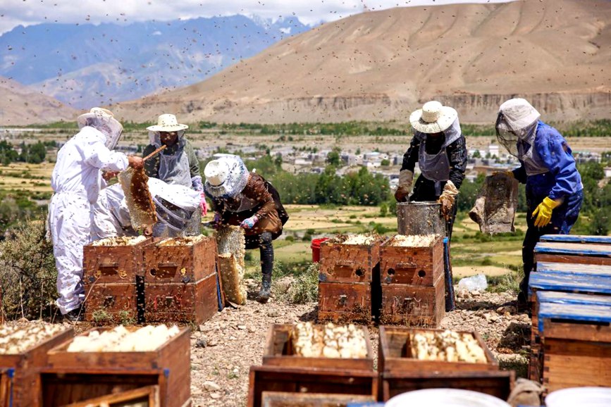 在張亮富的幫助下,山南市錯(cuò)那縣發(fā)展養(yǎng)蜂產(chǎn)業(yè)。張慧龍攝