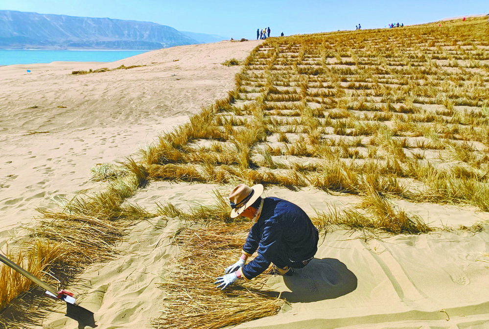 整齊排列的草方格,隨風搖曳的烏柳樹,生機勃勃。青海省海南藏族自治州共和縣龍羊峽庫區北岸——曾經的不毛之地,如今已煥然一新,一條條綠色長廊盡顯生命的力量。自生態項目建設以來,共和縣通過草方格沙障與烏柳插桿水鉆造林、檸條直播及沙蒿撒播相結合等方法進行荒漠化治理,造林成活率達到90%以上,創造出龍羊峽北岸的“綠色奇跡”。