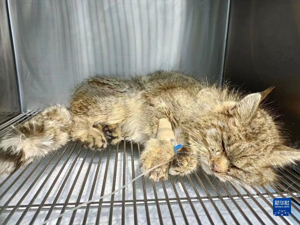 2022年3月21日,受救護的荒漠貓在青海野生動物救護繁育中心接受治療。新華社發(青海野生動物救護繁育中心供圖)