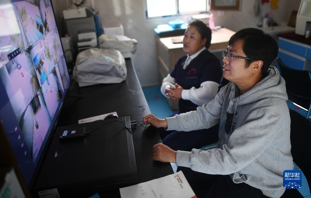 9月18日,在青海野生動物救護繁育中心,工作人員查看監控,了解荒漠貓的進食情況。新華社記者 張宏祥 攝