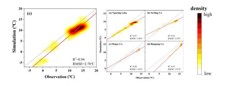 湖泊水溫是區域水分與能量平衡的重要變量,也是湖泊水生生態系統的控制性參數。由于常規地面觀測的局限,青藏高原湖泊水溫觀測數據普遍缺乏。團隊集成遙感與數值模擬技術,發展了水溫數據重建的技術框架,突破了模型數據要求高而移植性差的局限,實現了多相態(冰、水、冰水混合)下湖泊水溫的動態模擬,揭示了青藏高原湖泊水溫的時空演化規律及其對氣候變化的響應。