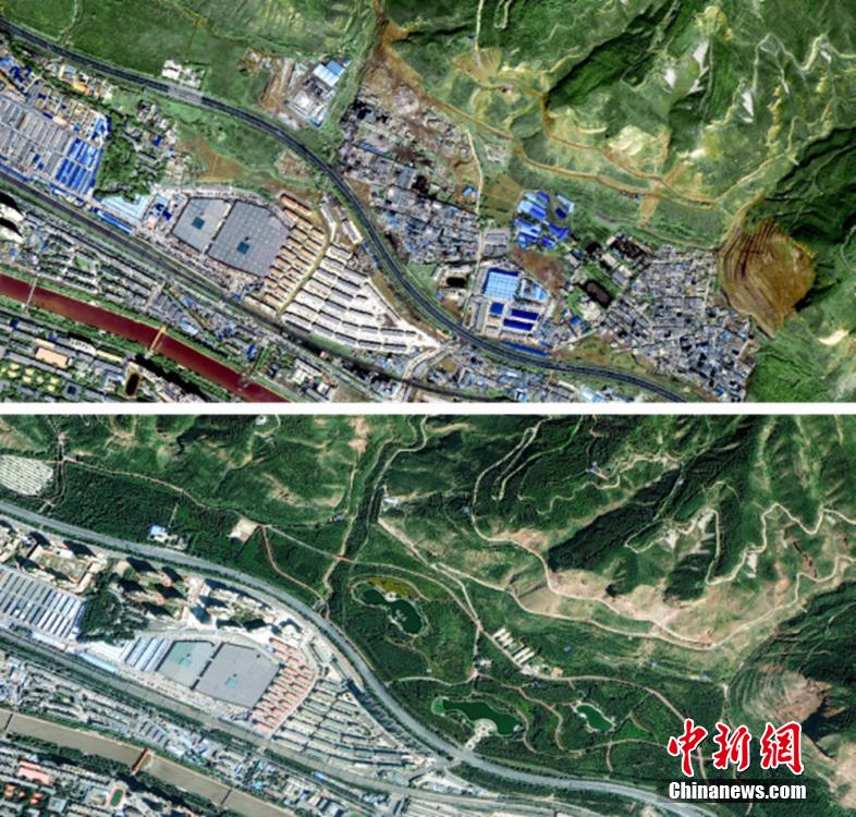 9月27日,中新網記者從青海省地質調查院衛星遙感中心(自然資源青海衛星應用技術中心)獲悉,該中心通過十年前后(2013年和2022年)高分辨率衛星影像的對比,特推出“衛星見證青海這十年”系列,多角度展示十年來包括青海省西寧市在內的相關地區,在城市建設、生態保護、產業發展、精準脫貧、民生福祉等各方面取得的變化。圖為西寧市2013年(上圖)和2022年(下圖)北山綠化。 王佳 攝