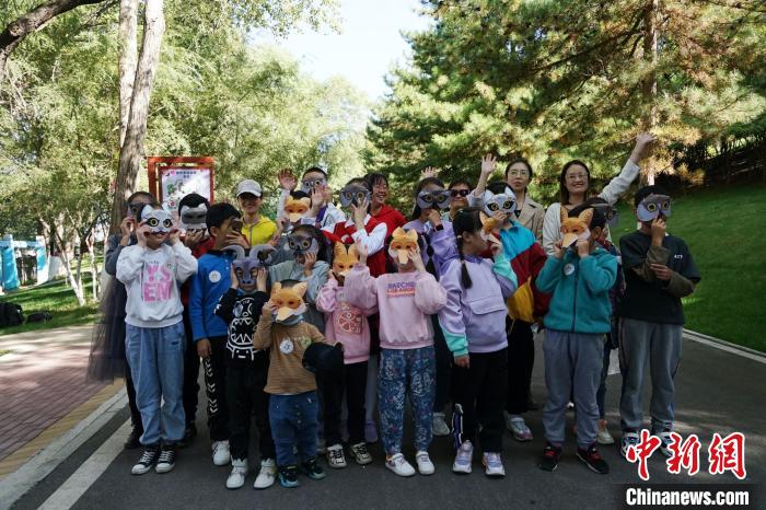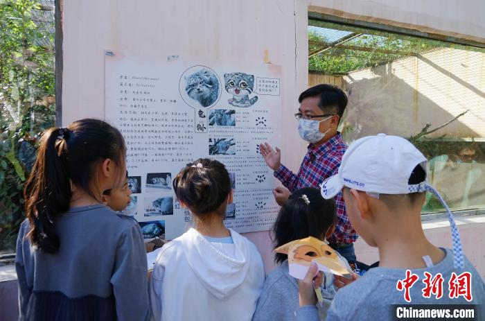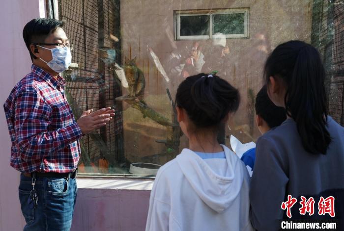 圖為青海野生動物救護(hù)繁育中心副主任向?qū)W生介紹荒漠貓。 馬銘言 攝