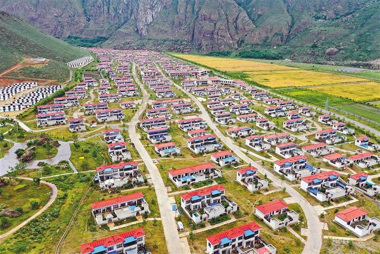易地搬遷脫貧一批。2016年以來,累計投入198億元,建成964個易地扶貧搬遷安置點,26.6萬人搬遷入住。圖為西藏自治區加查縣共康村易地扶貧搬遷點。