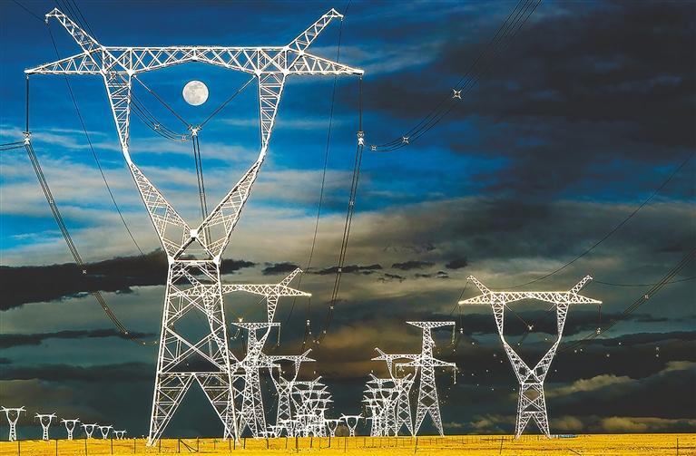 青藏、川藏、藏中、阿里電網聯網,四條“電力天路”點亮西藏千家萬戶。2015年以來, 累計外送電量92億千瓦時。圖為“電力天路”鐵塔。