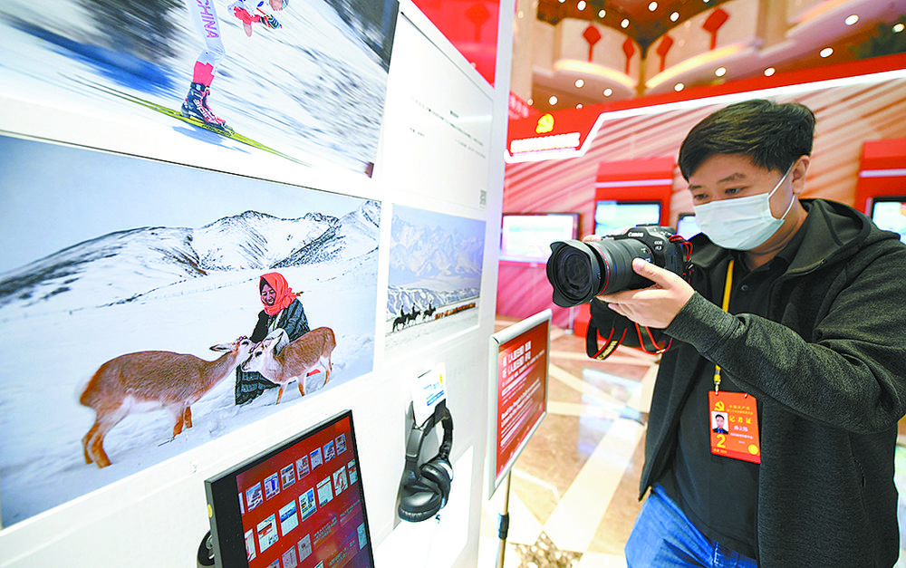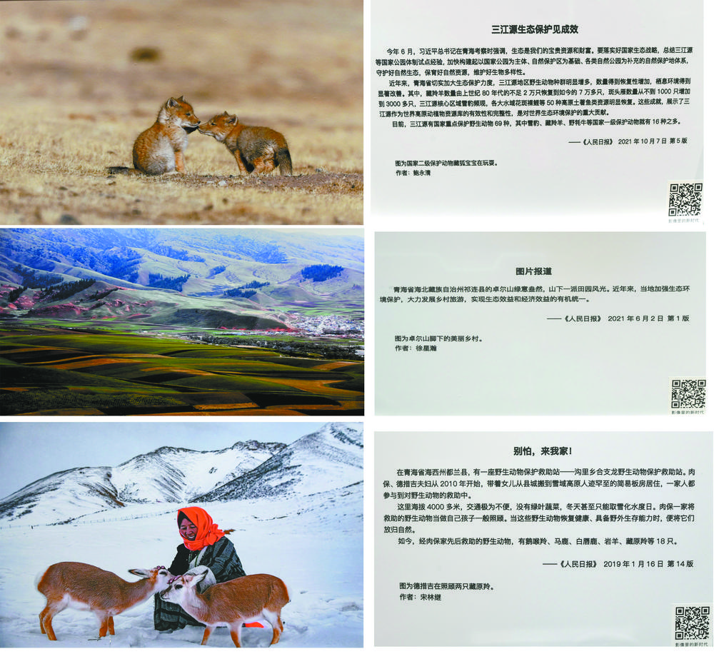 兩只憨態可掬的藏狐寶寶、卓爾山腳下的美麗鄉村、人與自然和諧共生的美好畫面……黨的二十大新聞中心融媒體體驗區互動展示墻上三張反映青海生態的照片,吸引了境內外媒體記者的關注。 本報記者 祁國彪 魏慧敏 攝