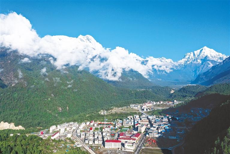 圖為2015年4月25日,尼泊爾發生里氏8.1級特大地震,位于邊境口岸的吉隆縣吉隆鎮受災嚴重。圖為災后重建的吉隆鎮新貌。