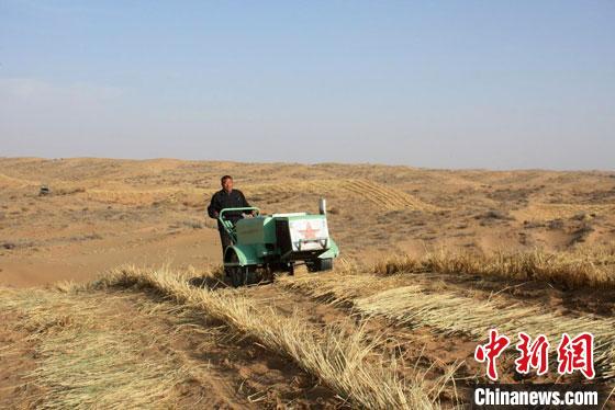 徐先英說,甘肅省治沙研究所科研團隊和相關企業,近年相繼研發了大型“立體固沙車”和小型“手扶式沙障機”,大大減輕了草方格沙障鋪設的勞動強度,尤其后者的工作效率是人工的4至6倍,每畝節約壓沙成本250元左右,已在河西走廊、青海等風沙源區推廣應用萬余畝。