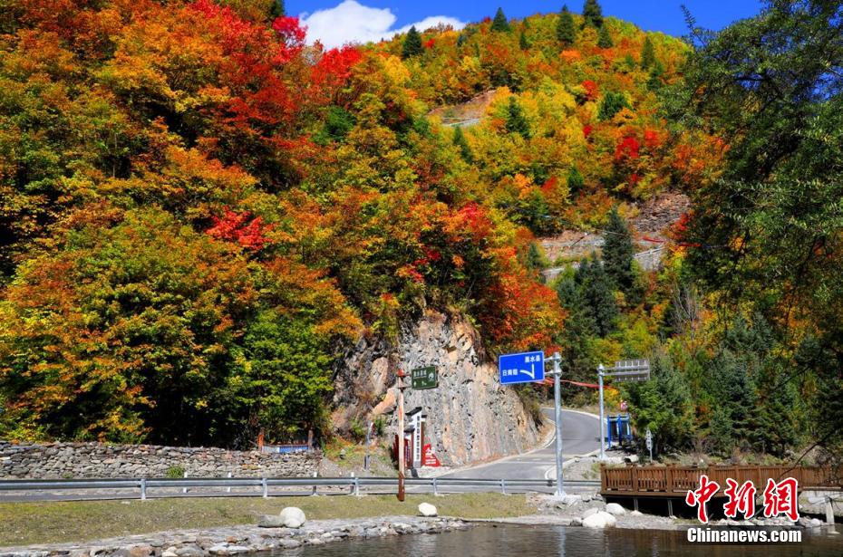 大紅、金黃、橙黃、墨綠、淺藍......秋意漸濃,輕風把四川阿壩州黑水縣3000多平方公里的林濤樹海慢慢渲染,從谷底到山巔,千樹萬葉將躍動的生命燃燒,留下最絢麗的身影,冰山彩林交相輝映;彩林湖泊浮光掠影,一派“樹樹皆秋色,山山似落暉”的壯美。黑水冰山彩林、卡龍溝彩林、奶子溝彩林等彩林區游覽面積達3000多平方公里,因面積大、色彩豐富而享有“亞洲之最”的美譽。圖為色彩斑斕的黑水彩林。 黑水縣委宣傳部 供圖