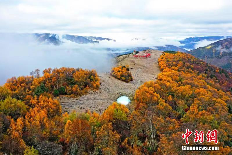 深秋時節,四川馬爾康市馬爾康鎮阿底村賽馬山迎來彩林觀賞的最佳季節。放眼望去,海拔3500米的賽馬山上彩林連綿延伸至茫茫云海,遠方雪山四面環繞,宛如仙境一般。阿壩州文體旅游局供圖