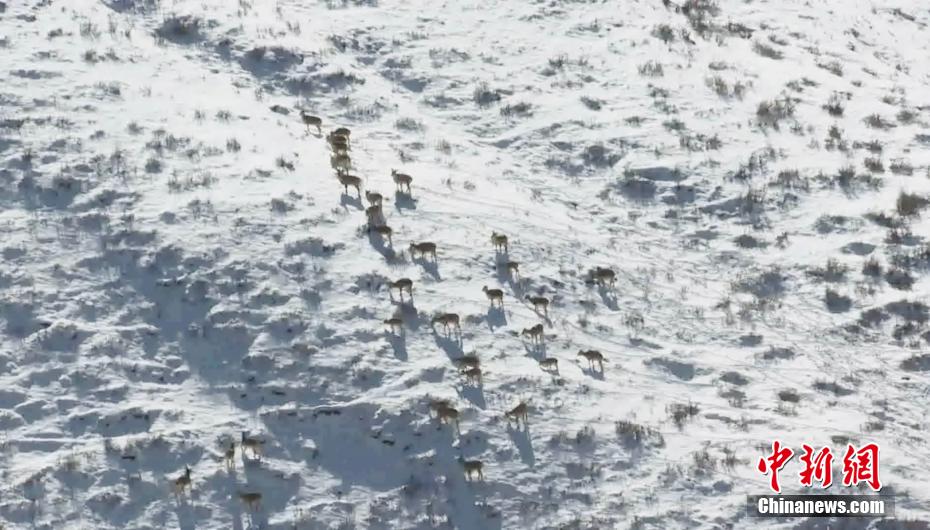 初冬時節(jié),青海省烏蘭縣攝影愛好者在烏蘭縣境內(nèi)發(fā)現(xiàn)近百只巖羊在崖壁間集體覓食,場面壯觀。據(jù)了解,巖羊?qū)賴叶壷攸c保護野生動物,常年生活在海拔2000到3000米的高山裸巖、草甸、山谷之中,具有極高的攀巖技術,被稱為“巖壁上的精靈”。圖為巖羊群在雪地里覓食。 烏蘭縣融媒體中心 供圖