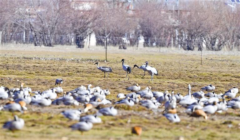 近年來,西藏多措并舉實施生態建設工程,黑頸鶴數量逐年遞增,目前西藏黑頸鶴數量超過萬只,每年到拉薩市林周縣越冬的黑頸鶴有2000只左右。