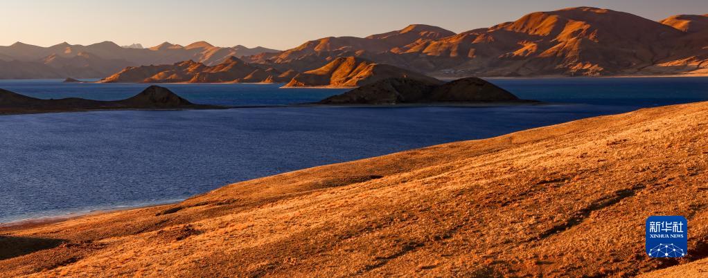 這是夕陽下的羊卓雍錯(12月11日攝)。新華社記者 沈虹冰 攝