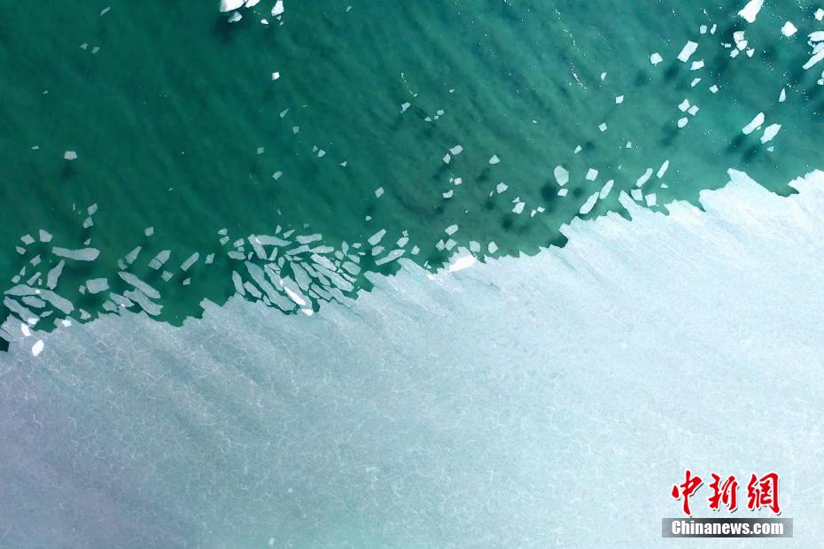 近日,素有“高原藍寶石”之稱的青海湖開始進入冰封期。青海湖水體周邊的零星結冰,青海湖西部邊緣、北部湖岸區、鳥島、青海湖斷崖等地出現成片結冰區。航拍畫面中可以看到湖心范圍尚有大面積未結冰區域。青海湖是中國最大的內陸咸水湖。冬日里的青海湖,寧靜而內斂。千里冰封,宛如童話世界。封凍的湖面如同破碎的“玉帶”,形成獨特的景觀。張世偉 攝