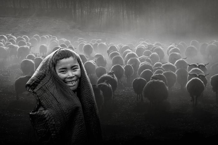 圖為焦生福作品《開心的羊倌》。 青海省祁連山自然保護(hù)協(xié)會供圖