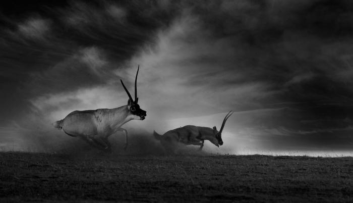 圖為焦生福作品《角逐》。 青海省祁連山自然保護(hù)協(xié)會供圖