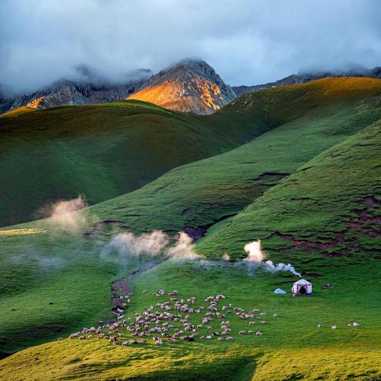 圖為焦生福作品《晨光炊煙》。 青海省祁連山自然保護(hù)協(xié)會供圖