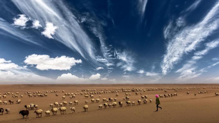 圖為焦生福作品《穿越沙漠的羊群》。 青海省祁連山自然保護(hù)協(xié)會供圖